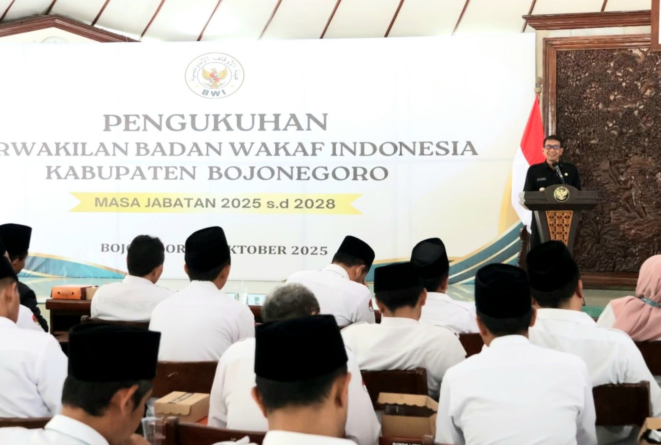 BOJONEGORO, Waskat.id – Pemkab Bojonegoro melalui Bagian Kesejahteraan Rakyat (Kesra) menggelar acara pengukuhan Perwakilan Badan Wakaf Indonesia (BWI) Kabupaten Bojonegoro masa jabatan 2025 – 2028, Selasa (7/10/2025) di Pendopo Malowopati. Pengukuhan ini berkaitan dengan dokumen keabsahan wakaf karena penggunaannya yang bersinggungan langsung untuk kepentingan masyarakat.