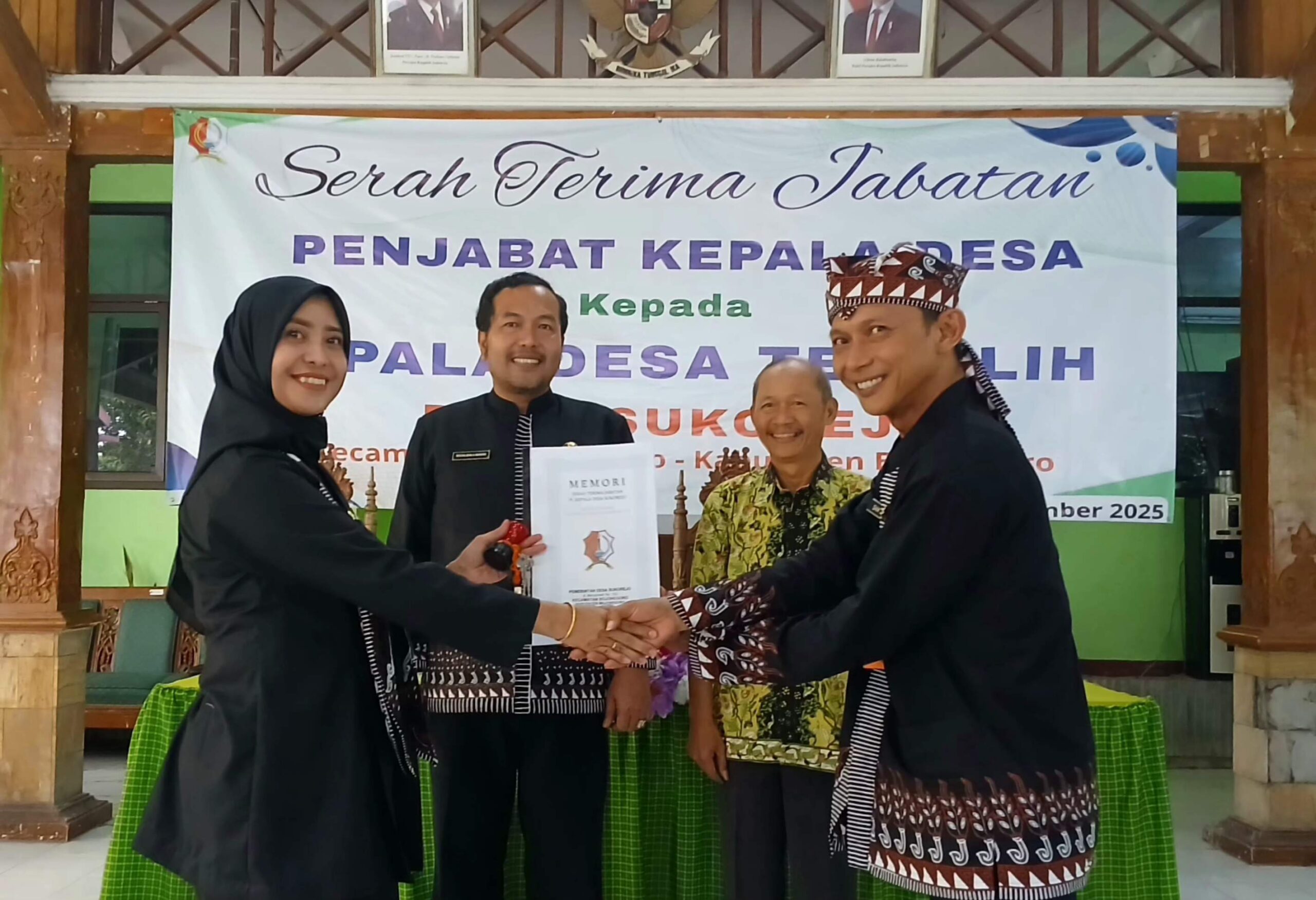 BOJONEGORO, Waskat.id – Pemerintah Desa (Pemdes) Sukorejo, Kecamatan Bojonegoro, Kabupaten Bojonegoro menggelar acara serah terima jabatan (Sertijab) Kepala Desa dari Pj. Kades Sam Aries Kurniawan kepada Kepala Desa Sukorejo defintif, Meyke Lelyanasari, S.Pd. Acara sertijab berlangsung sederhana dan khidmat, bertempat di Balai Desa Sukorejo, Senin (22/12/2025.