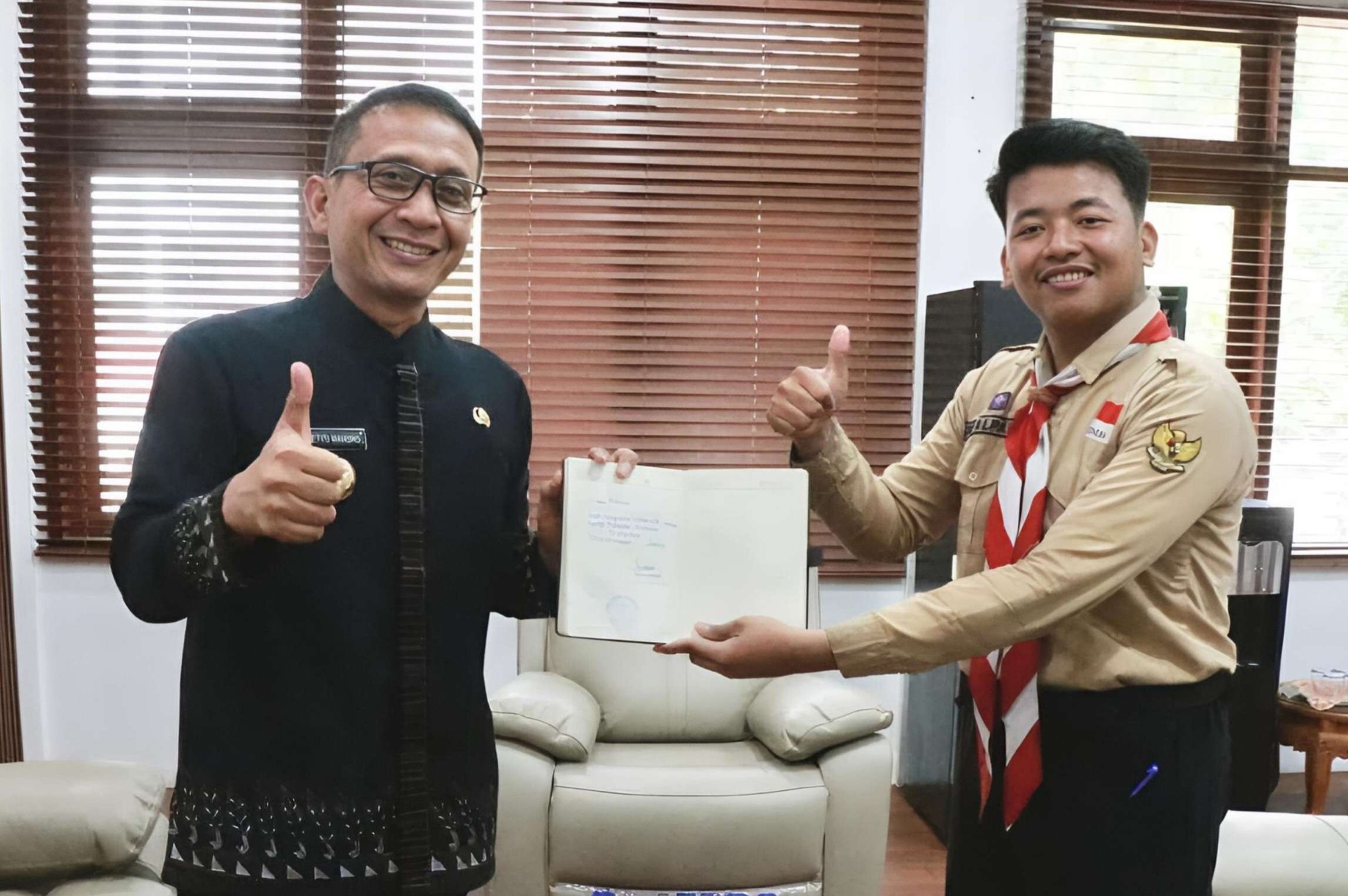 Dengan mengenakan atribut Pramuka lengkap, Alpandy datang ke Kantor Pemerintah Kabupaten Bojonegoro untuk bertemu langsung dengan Bupati Bojonegoro, Setyo Wahono dan Wakil Bupati, Nurul Azizah di ruang kerja pada Kamis (16/4/2026). Kehadirannya disambut hangat sebagai bentuk apresiasi atas semangat dan dedikasinya.