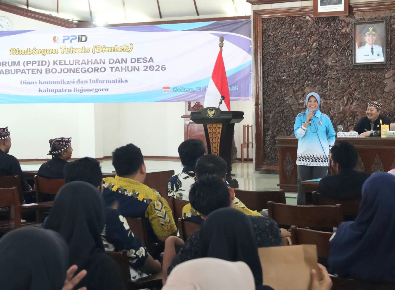 BOJONEGORO, Waskat.id – Pemerintah Kabupaten Bojonegoro melalui Dinas Komunikasi dan Informatika (Kominfo) kembali menggelar Bimbingan Teknis (Bimtek) Forum Pejabat Pengelola Informasi dan Dokumentasi (PPID), Selasa (21/4/2026). Bimtek kali ini digelar di Pendopo Malowopati dengan sasaran para sekretaris desa dan kelurahan selaku PPID, sebagai upaya memperkuat implementasi keterbukaan informasi publik (KIP).